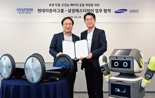 2025年2月24日にはHyundai Motorと韓国Kia、Samsung SDIがロボット専用バッテリを共同開発すると発表した(図1)。Hyundai Motorなどによると、現在はロボット専用のバッテリがないため、工具用か小型電気自動車(Light Electric Vehicle)用のバッテリを搭載するロボットが多い。しかしロボットの形状は多種多様で、取り付けるスペースも限られているためバッテリが小さくなりがちで、出力容量も減少してしまう。